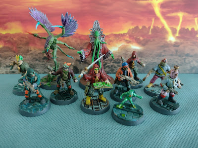 I say they're finished, but I'll probably need to make a few more cultists for a campaign, these were made with Stargrave Crew and spare Necromunda Cawdor parts along with other assorted bits. The Entities are D&D miniatures and a converted Warcry Harpy; similarly, I would like to replace the Minor Pact (the little one) with something more in-line with the two bigger versions. For now though, it's more than adequate and I can get a few games in. I have a few other things on the painting and building table and it's only a couple of weeks until my next game with Andy, so expect to see more soon.